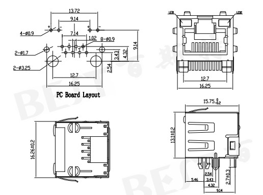 rj45插座56S-LED 8P參考圖紙